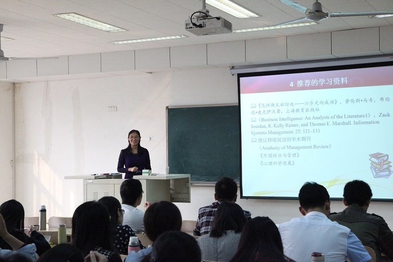 杨静博士做客“青年博士论坛”,在逸夫楼501 教室作了题为“如何做文献综述”的学术报告,2015级全体研究生及2014级部分同学到场参加。讲座由学院副院长陈寒松教授主持。