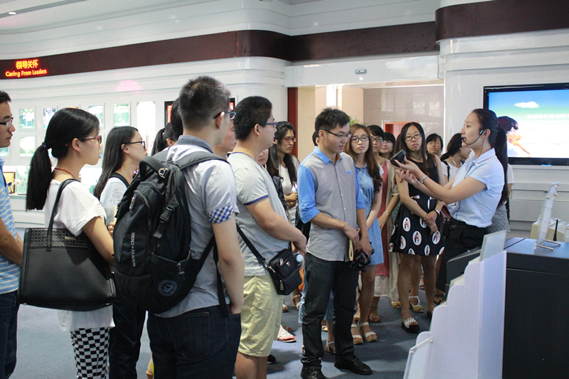 在参观现场,集团的解说员向同学们介绍了公司的发展历程浪潮是中国最早的IT品牌之一最初生产的是教学器材,比如三角板,接着研制出大功率三极管、微机、汉字传呼机等,后来研发出服务器并开通浪潮第四代云计算中心。如今浪潮的大型应用软件和管理软件为不同行业用户的信息化需求提供全方位的解决方案,如浪潮已为工商、纪检等各级政府机关提供电子政务的全面解决方案浪潮税控收款机位居中国市场占有率第一浪潮研发的银行自动取款机等金融设备和数字有线电视机顶盒等数字媒体终端已推入广泛的市场。