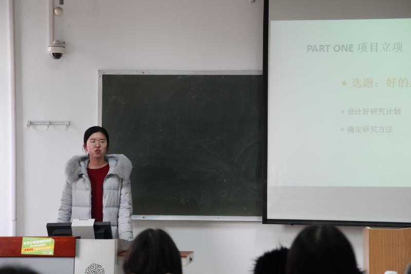 “济南市场高端定制月子服务企业运营现状及问题研究调研团队”负责人季芮虹从项目立项、问卷调查、实地访谈、报告撰写四部分介绍了“三千计划”活动流程。季芮虹指出可以根据热点问题或导师课题等方向进行选题并进行可行性分析,撰写立项申请书要重点突出实践优势。针对调查问卷设计和发放,她特别强调调查问卷的题目数量适中等问题。在报告撰写部分,她展示调研报告的框架并根据各部分内容的书写给出了针对性建议。“老龄化背景下的济南市离退休专业技术人才开发现状调研团队”负责人于洁结合团队调研过程特别强调了以访谈法进行调研的过程和注意事项,于洁指出可以通过预调研的形式对访谈提纲进行进一步优化。