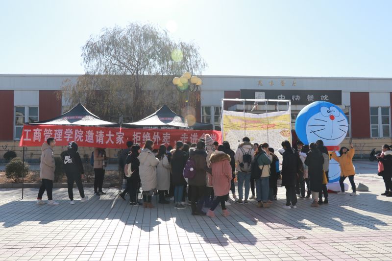 2018年12月11日-12日在明水校区悦动广场举办“拒绝外卖,走进食堂”活动,向广大学生发出倡议。
