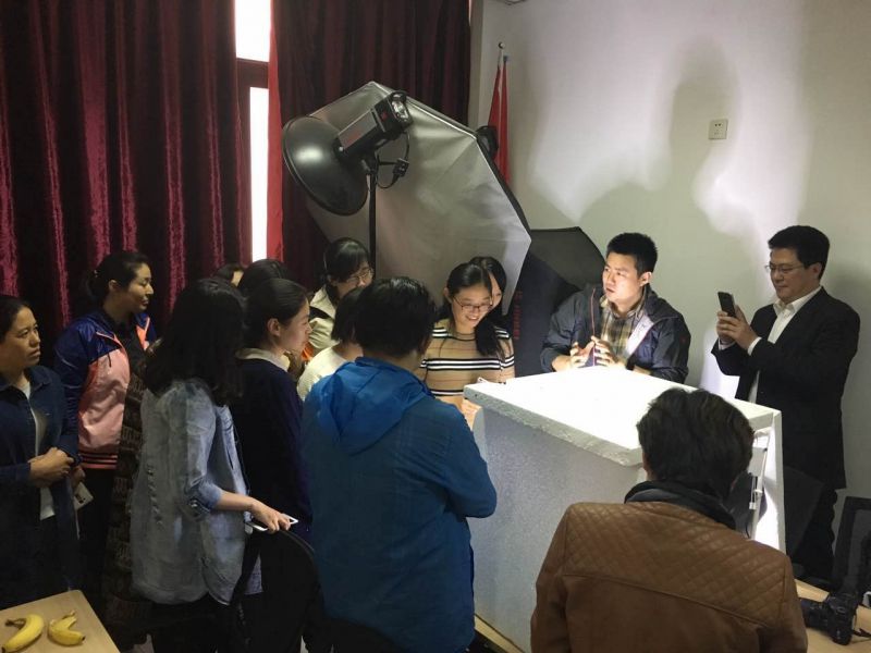 活动现场,老师们还在提前搭建好的小型静物摄影棚中进行实拍,并由闫实、王璟珉和曲春光现场指导,气氛热烈愉快,参与者收获良多。郭丽娟老师说:“原以为学摄影就一定要忍受枯燥的技术术语,可是,这次沙龙的方式真的很特别,轻轻松松就把好多专业的摄影知识和技巧传授给了我们这些摄影小白。”
