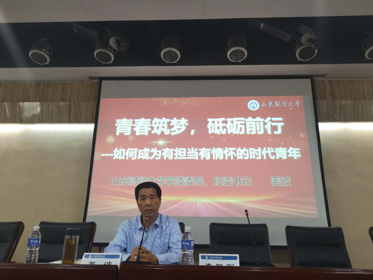 “让高校成为学习之园”,姜波叮嘱同学们要把主要精力放在学习上,要不怕吃苦,坚持学习,持续学习,利用美好的大学四年,打好专业知识的基础,将个人理想抱负与家国情怀结合起来,思考祖国的发展和自身的使命,坚定自己的理想信念,为共产主义事业奋斗终身。此外,同学之间也要相互学习,取长补短,增加友谊,让友谊成为学习和生活中遇到困难时的支撑,今后事业中的桥梁,学习征程中的动力。