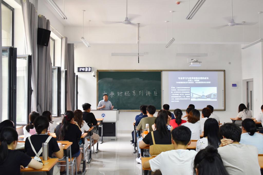 校友孙雪峰结合自身的经验为同学们传授销售技巧,并鼓励同学们坚持学习、坚持锻炼身体以及坚持“坚持”本身。随后,岳召宝校友就学习、工作、生活三个方面与同学们进行分享交流。岳召宝表示,我们的社会讲求互助共赢,无论是在大学还是在择业时,都应该选择加入一个有未来的组织,在其中不断付出、不断成长,提高自身的层次和格局,开拓自己的视野,努力成为一个有能力、有激情、有担当、有情怀的领导者。