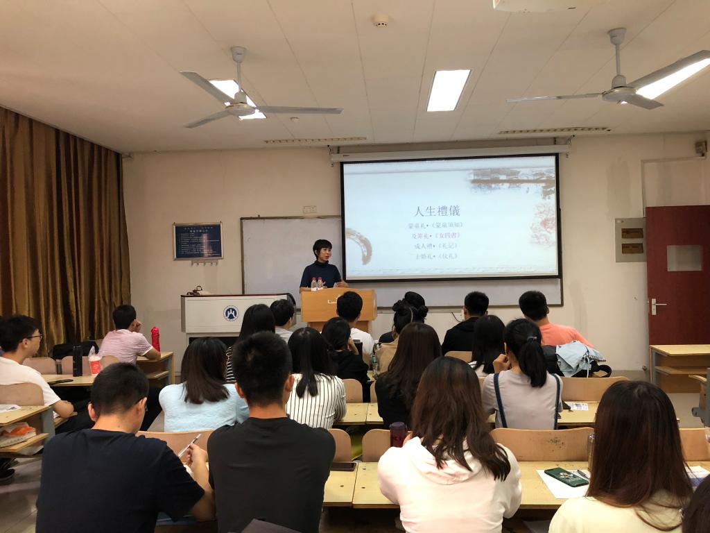 旅游管理系教师高雁主讲,旨在弘扬中华优秀传统文化、培养学生的社交礼仪,党委副书记彭艳红、研究生辅导员尤泽民以及2019级全体研究生参加。