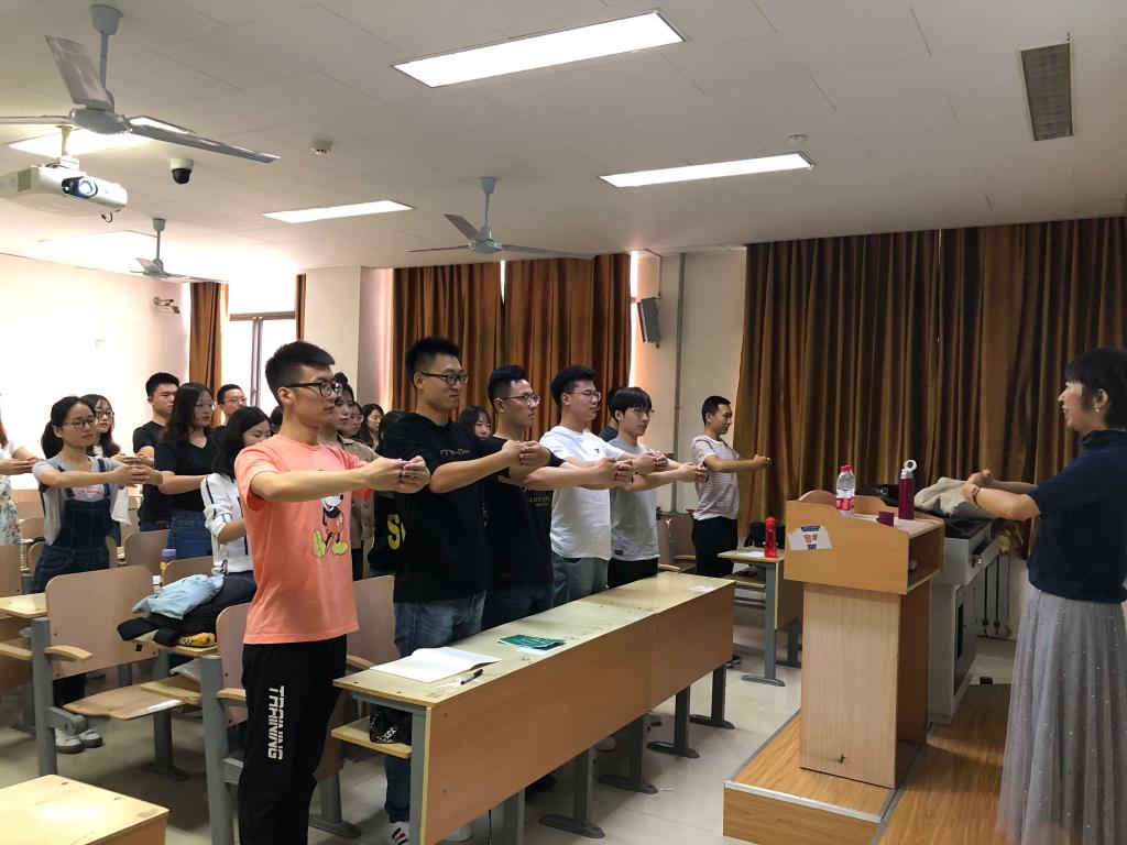 首先,高雁向同学们推荐了“中国礼仪网”,希望每个人以“知识碎片”的形式学习生活中的基本礼仪,从细节做起,提升自身素养,树立良好的个人形象。紧接着,她以“吟诵”的方式,带领大家畅游在《童蒙须知》一书中,“夫童蒙之学,始于衣服冠履,次及言语步趋,次及洒扫涓洁,次及读书写文字,及有杂细事宜,皆所当知。” 从生活起居、学习、道德等多方面为同学们提供了宝贵的建议。另外,除了基础知识的讲解,高雁还亲切地教授大家如何行拱手礼等礼仪,同学们积极配合老师,现场气氛十分热烈。
