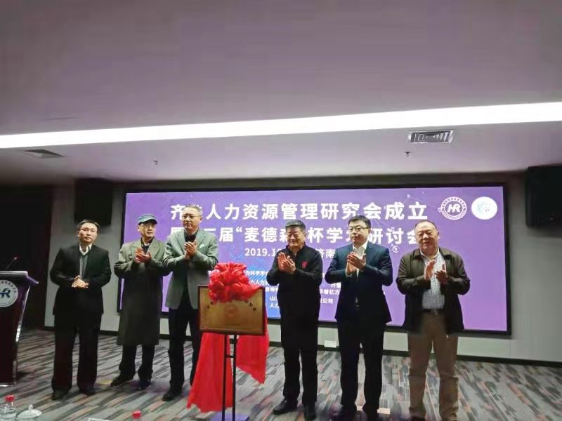 为了学会的发展,经过半年的筹备,2019年4月山东省行为科学学会第六届理事会第六次会议一致通过成立齐鲁人力资源管理研究会分会。本次会议为齐鲁人力资源管理研究会的成立举行了严肃和隆重的揭牌仪式。选举产生了齐鲁人力资源管理研究会第一届负责人,他们分别是会长刘军,执行会长任燕,常务副会长黄少英,副会长刘冰、刘春英、徐大丰、王安中、朱海鹏、李召华、石作欣、李春明、杜阔辰,秘书长陈伟,副秘书长岳雷、赵亮、王丽娟。