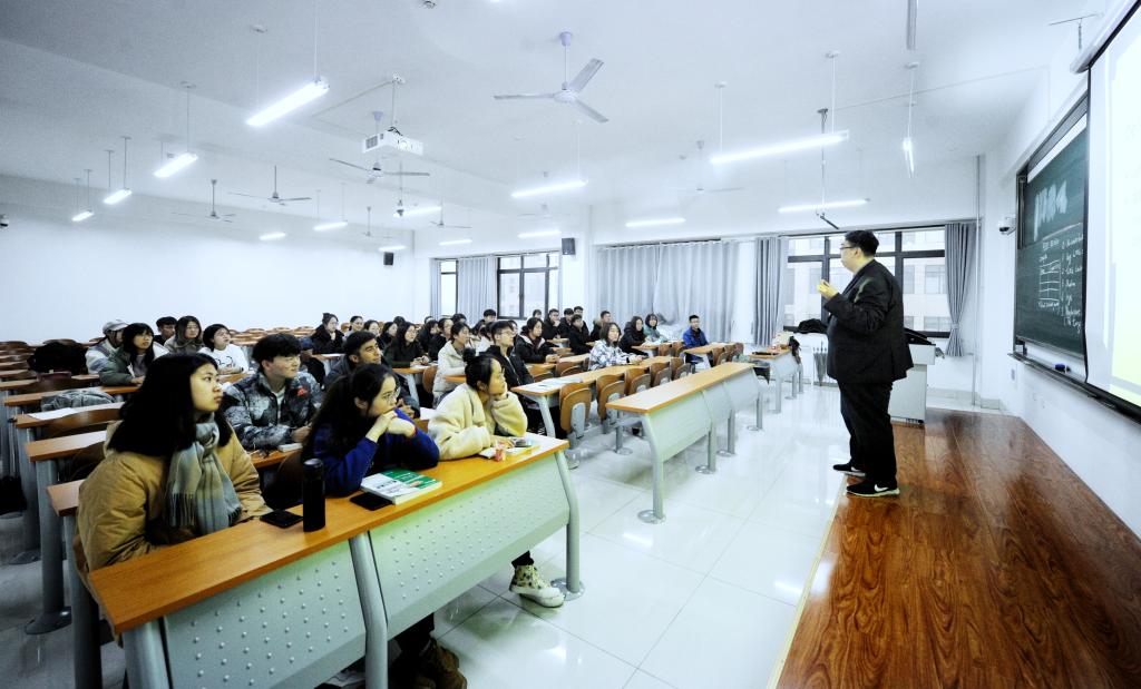 本次为《商业伦理》(双语)课程国际化项目实施的第三期,由来自澳大利亚伍伦贡大学的Tairan Kevin Huang(黄泰然)担任外籍特聘教师。课程体系以“商业价值塑造、社会责任树人”为指导思想,在为期六周的时间里,将枯燥的哲学理论联系实际,在帮助学生树立正确价值观的同时,提高学生的逻辑思维能力。学期的前十周由中方教师对学生进行相关理论铺垫。之后,由黄泰然老师以国际案例为出发点带着同学们开展理论的应用。案例讨论主题涉及全球化与商业伦理、消费伦理、环境与商业伦理、雇员与商业伦理等多领域。