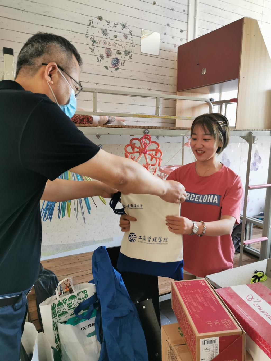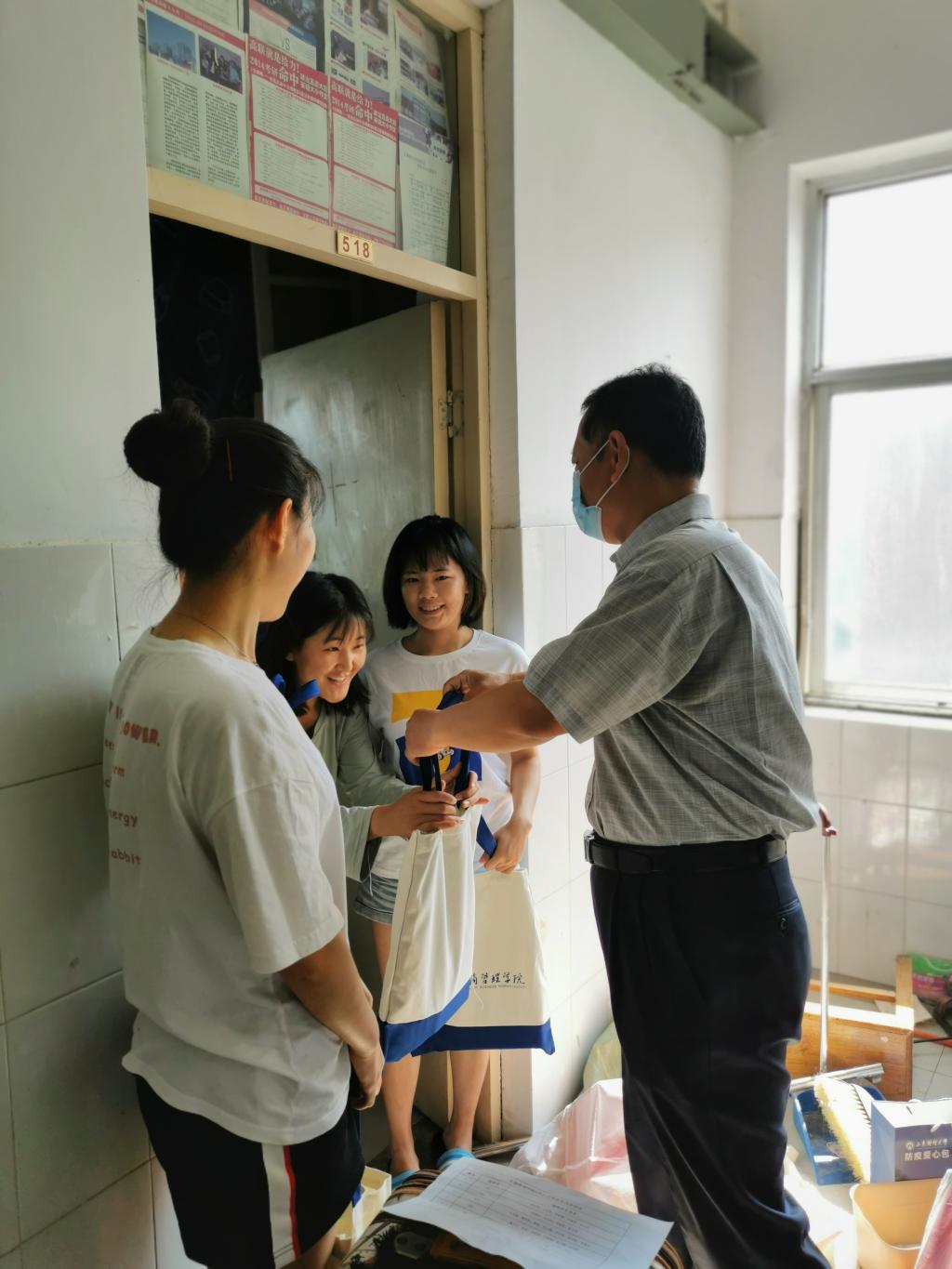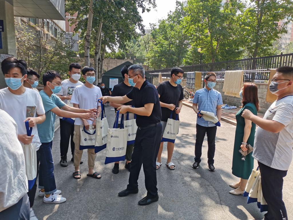 学院领导和老师奔走在本、硕毕业生的四栋宿舍楼,将精心准备的“毕业大礼包”亲自送到毕业生手上。
