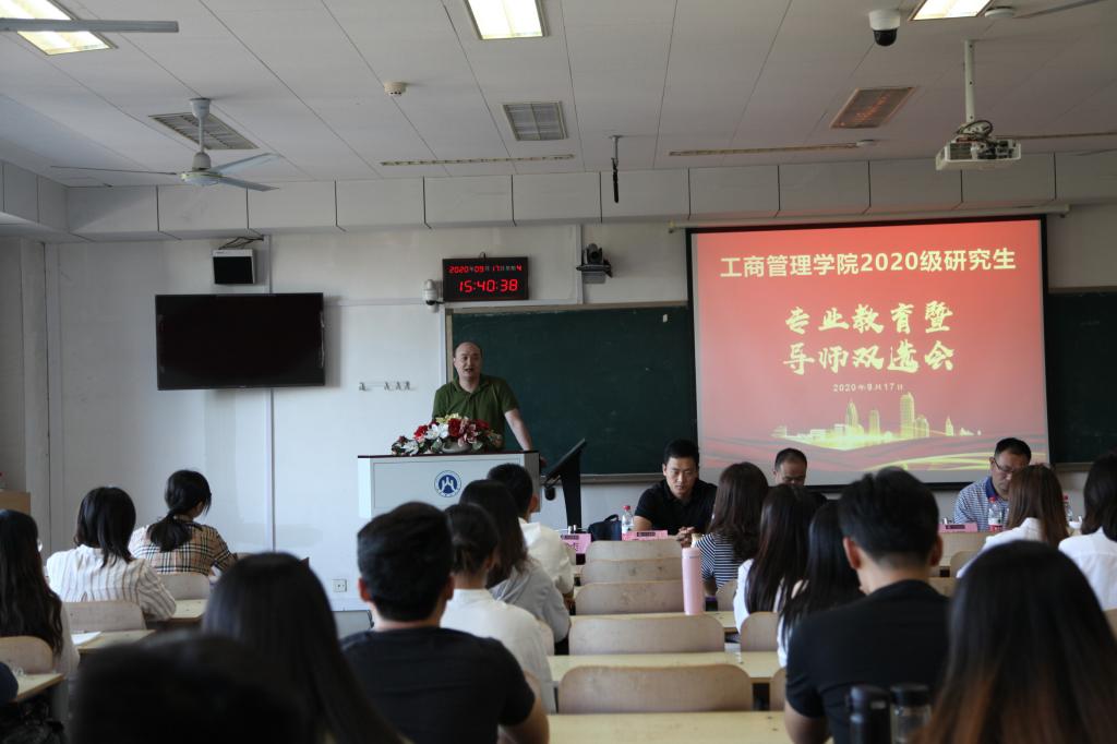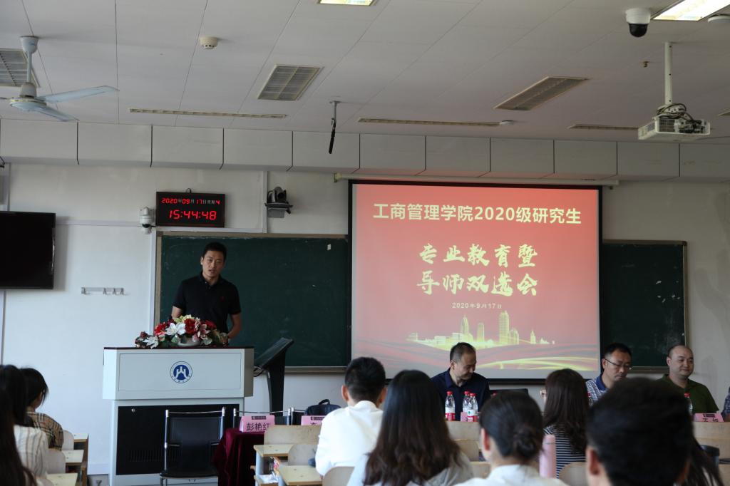 典礼进入第二阶段专业教育暨导师双选会,由副院长王旭主持。学院市场营销系于仁竹、人力资源管理系耿新、旅游管理系于伟、房地产开发与管理系孙亚男及工商管理系王旭分别介绍了各自的研究领域和专业方向,并用生动有趣的语言与学生们进行了交流。