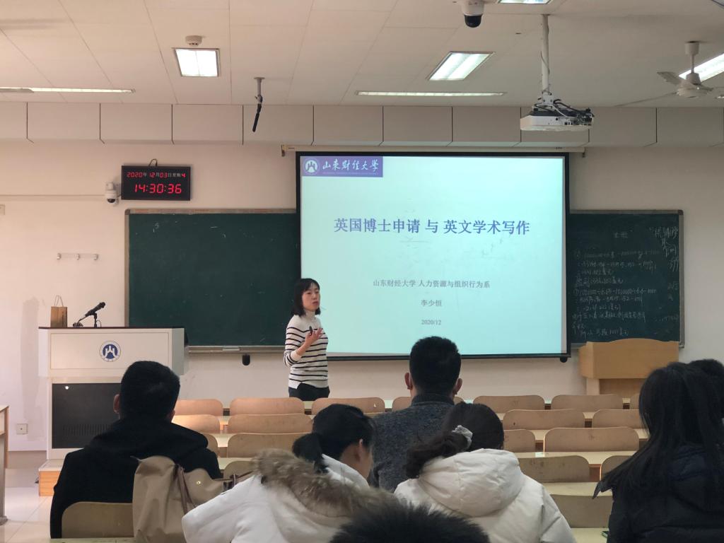 第一部分,李老师分享了自己留学的经历和经验。在英国攻读硕士和博士不光是增进了学术能力和学历水平,同时结识了来自世界各地的老师和朋友,感受了不同的文化,体验了当地的风土人情。留学经历确实能够开阔视野,丰富人生阅历。在李老师的生动讲解下,现场气氛变得活跃起来,同学们仿佛置身于阴雨连绵的伦敦,听着娓娓道来的英国故事。