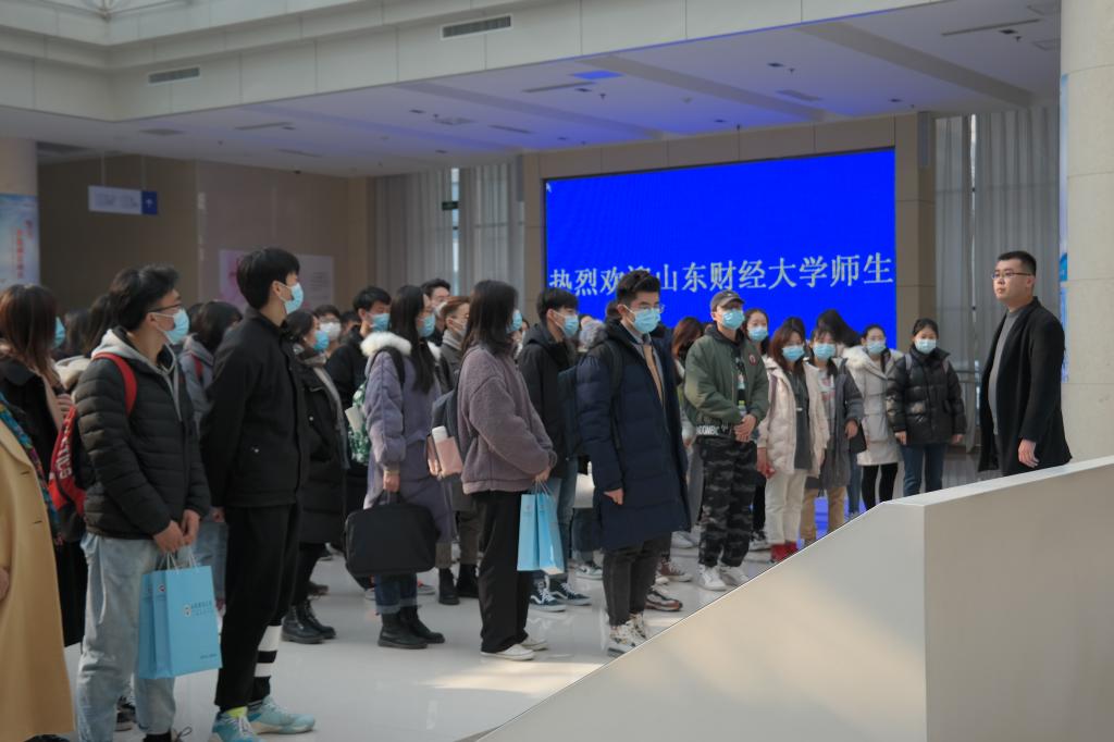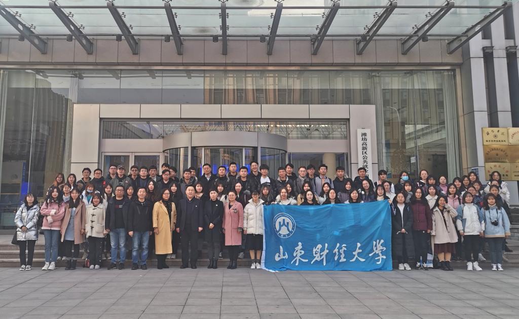潍坊高新区党群工作部部务委员、公共就业和人才服务中心主任韩炳顺和高新区公共就业和人才服务中心副主任李玲玲、颜飞等做了热情接待。首先,园区讲解人员向同学们简单介绍了整个园区的发展及现状。截至目前,潍坊人力资源服务产业园已成为区域人力资源服务供给集聚地、产业发展的核心区。