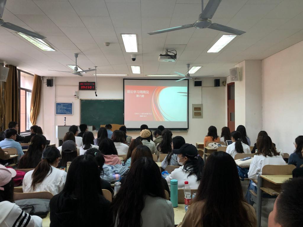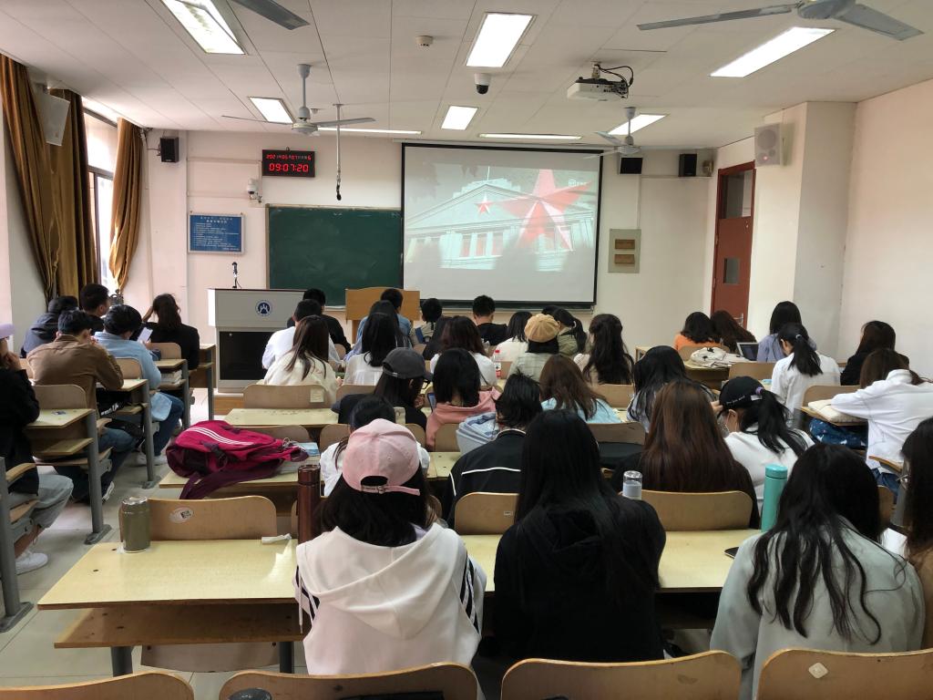 研究生相聚Y206教室,共同观看党史纪录片《共产党人》。