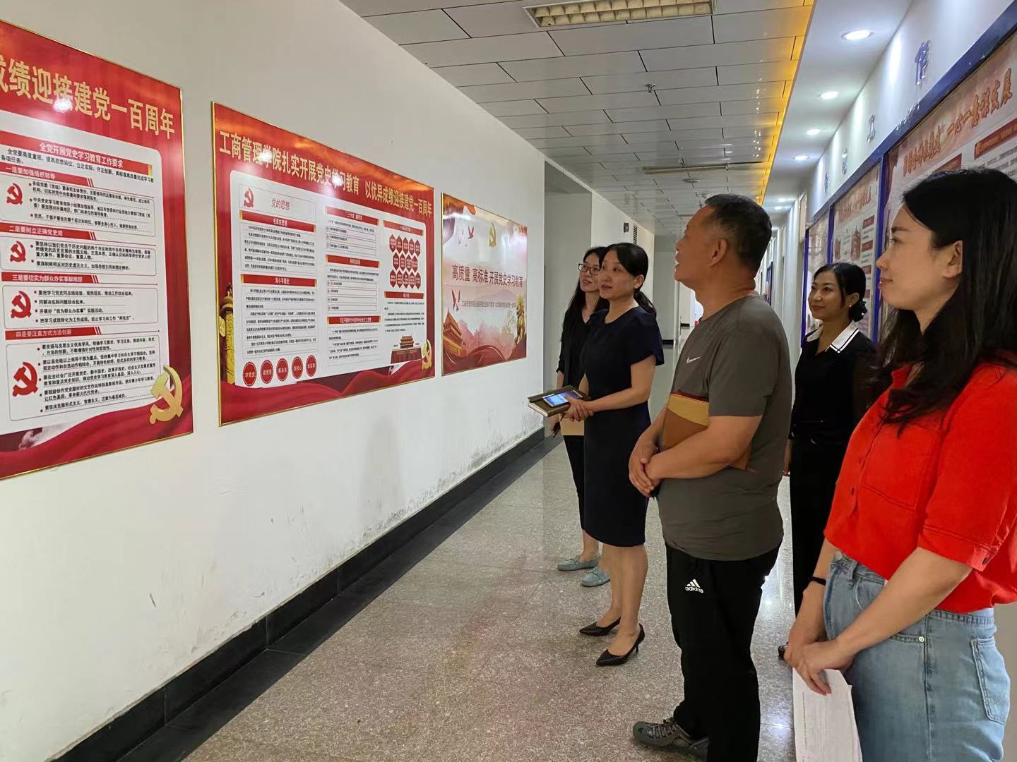 会后,杨扬一行参观了学院的党史学习宣传墙。