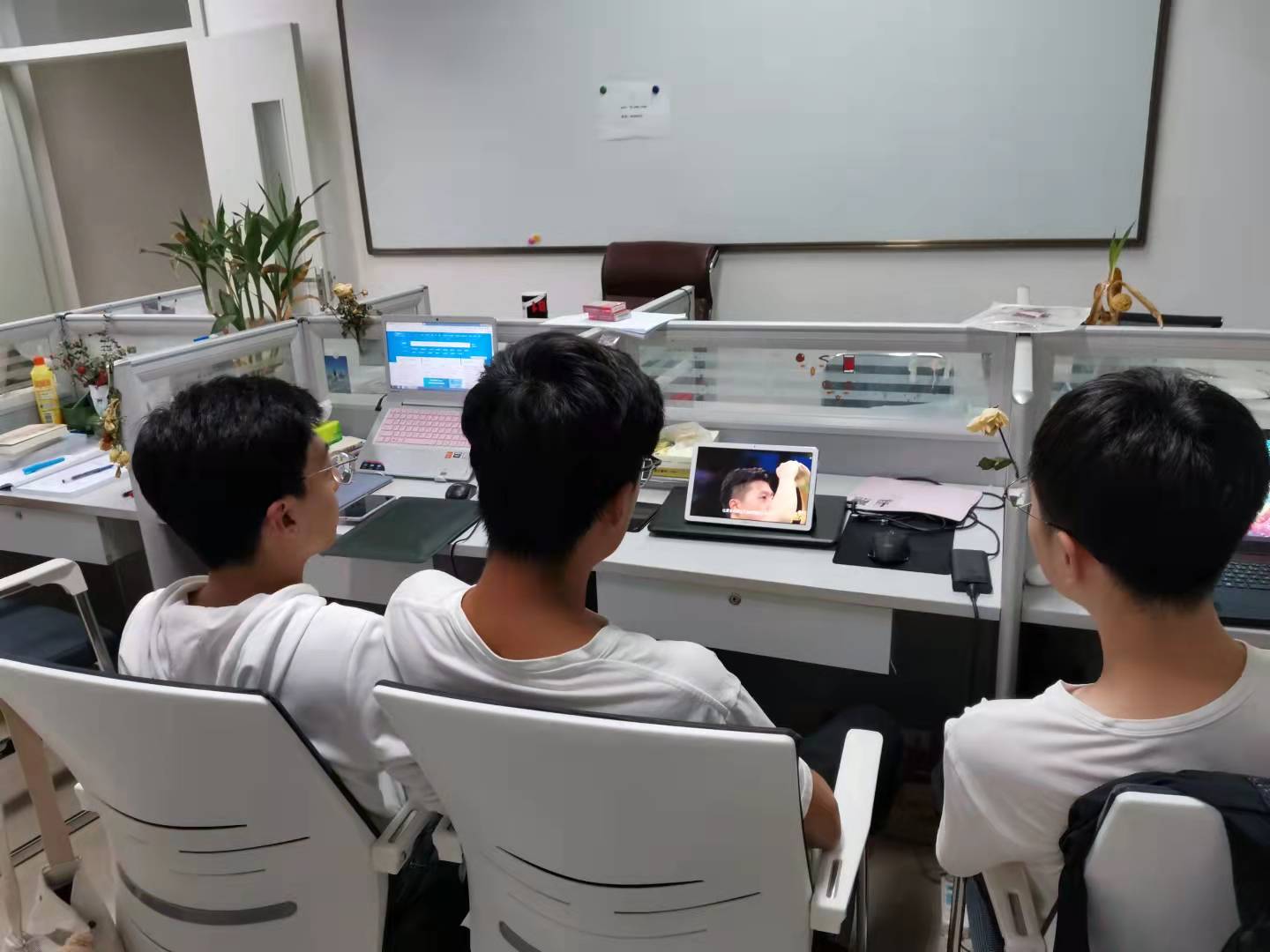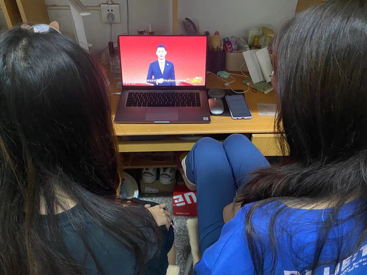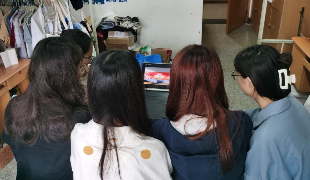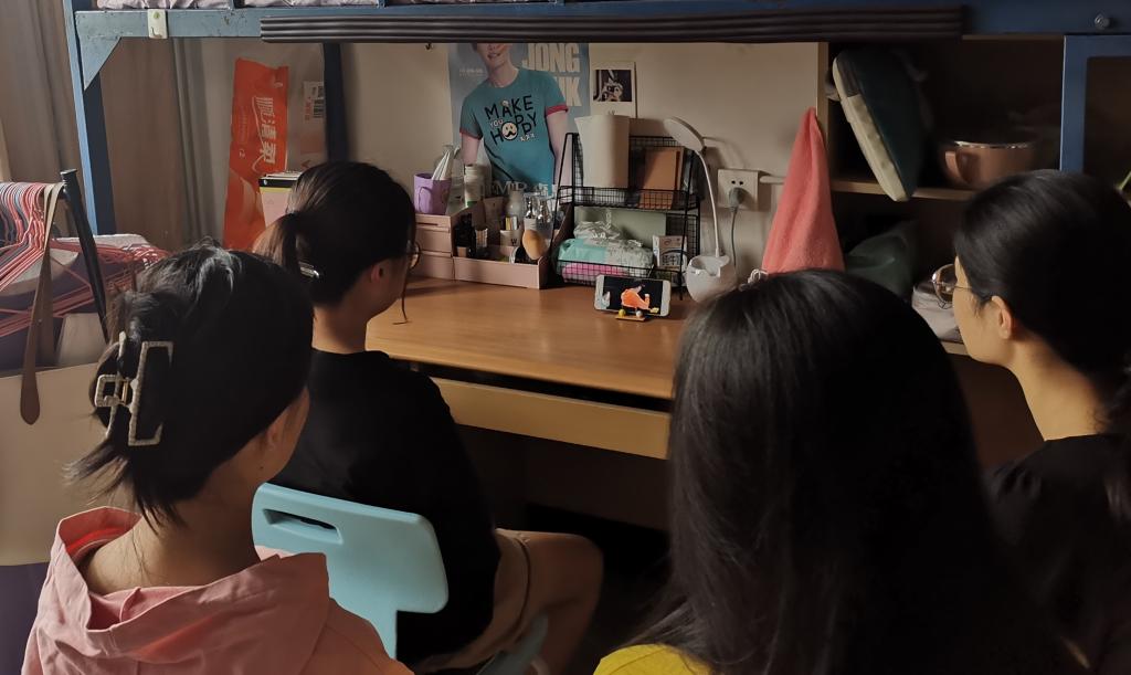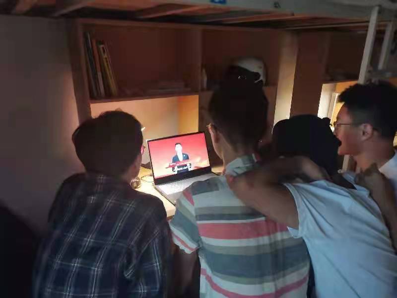 全体研究生同学于不同地点,同一时间,准时同上一堂课——奥运思政大课。开课时间一到,同学们或在宿舍或在科研室,都齐聚屏幕前,一同再次感受奥运激情,重温祖国荣耀时刻。