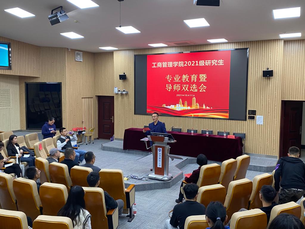 接着典礼进入第二阶段专业教育暨导师双选,由工商管理系陈庆江主持。学院市场营销系、人力资源与组织行为系、文化和旅游系、房地产经营管理系教师就所在系的研究领域和专业方向向2021级研究生新生们作了详细介绍,并与现场的同学们进行了互动交流。
