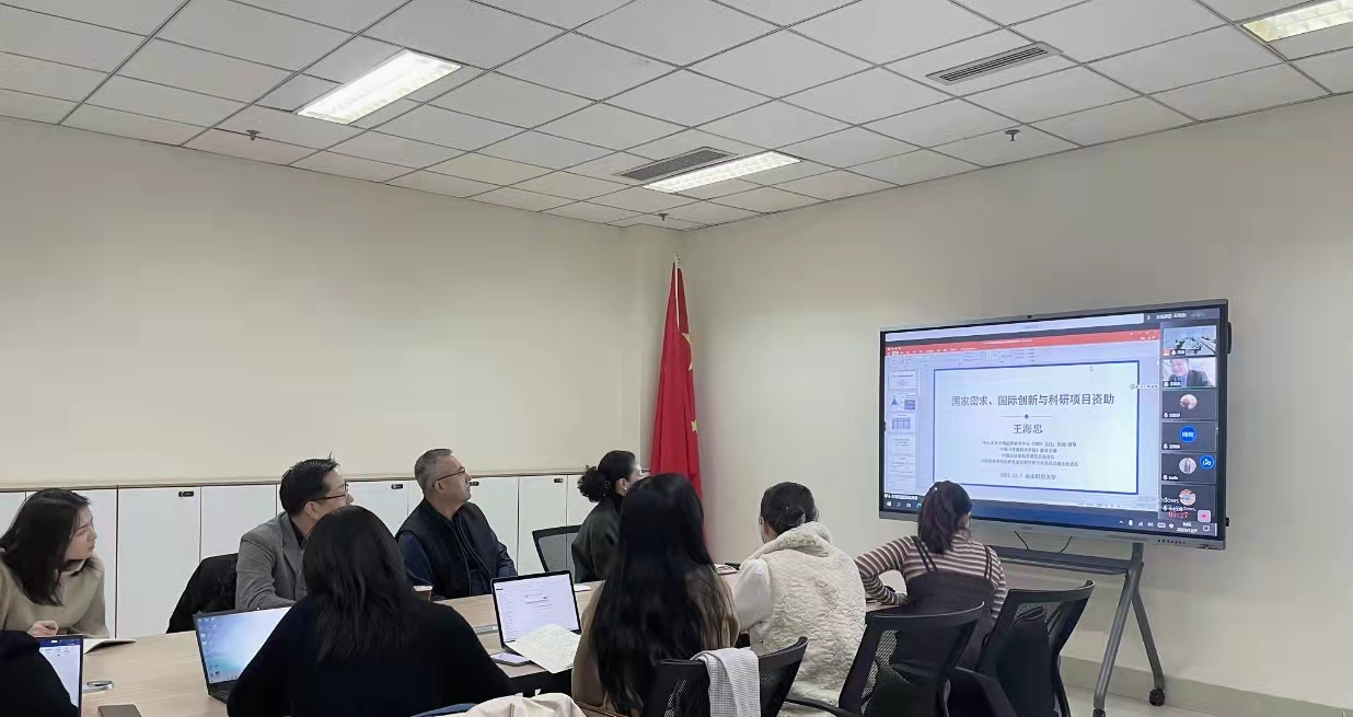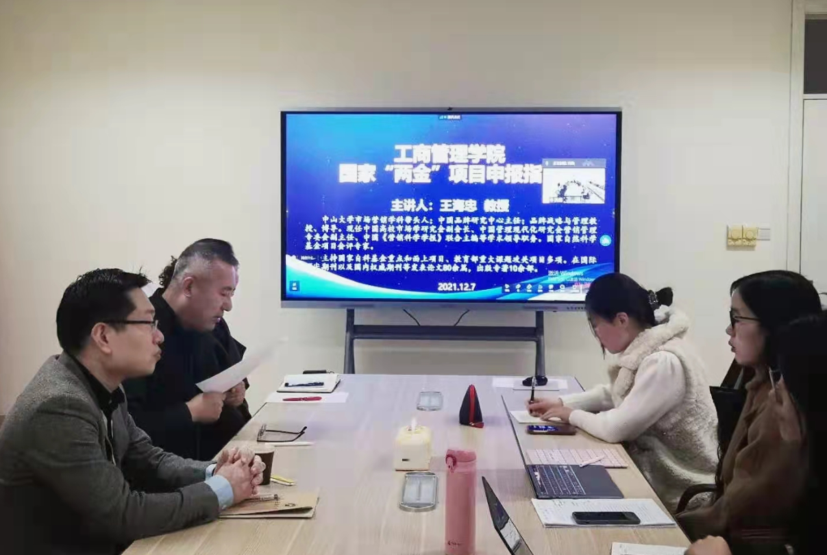 在燕山校区逸夫楼Y207组织召开2022年度国家“两金”项目申报指导会。学院特邀国家基金项目评审专家王海忠教授以“国家需求、国际创新与科研项目资助”为题,做申报经验分享和交流。院长刘军和学校新引进的英国社会科学院院士刘毅鹏教授出席会议,会议由副院长邢楠楠主持,拟申报2022年度国家“两金”项目的教师参加会议。