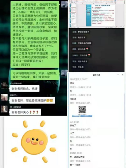 老师们亦将与同学之间的云端沟通延伸到了课后,老师们通过微信、QQ、电话等多渠道,使师生之间保持最大程度的沟通。尤其是封校后,多位老师在朋友圈发送我校万众一心“疫”路相随的文章,引发大量学生的情感共鸣和作为山财大工商人的自豪感。一代人有一代人的长征,一代人有一代人的历练,不必喟叹“我四年大学是在疫情中渡过的”,把握好自己,与大家一起共克时艰,这就是我们人生的光彩篇章。