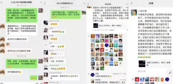 在疫情防控方面的精密部署及院系领导、辅导员老师在关心学生健康等方面的努力。