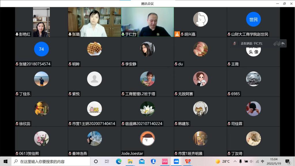 特邀山东省鲁盐集团有限公司运维部副部长张璐为市场营销专业学生开展以“营销人生:开启荣耀王者之路”为主题的线上讲座,学院党委书记赵世民,政府绩效评价研究中心副主任、市场营销系教授于仁竹,与各年级市场营销系学生一同聆听此次讲座。学院党委副书记彭艳红主持。