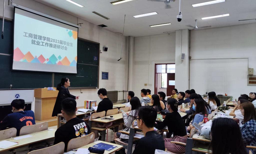 在逸夫楼302召开2023届毕业生就业工作推进研讨会。学院党委副书记侯昭瑾,毕业班辅导员范进进、郭丽娟、赵萱及各班学生代表参加了研讨会。