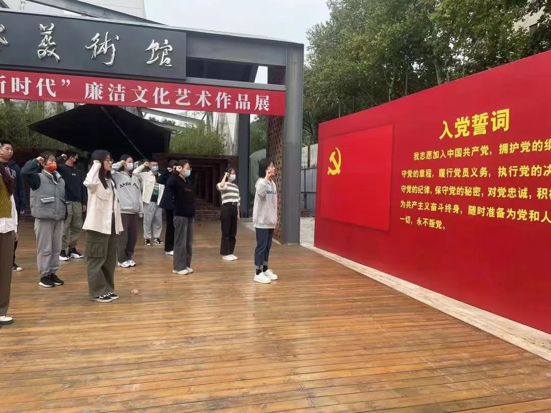组织“喜迎二十大 建功新时代”廉洁文化艺术作品展参观活动。学院党委书记赵世民、副书记彭艳红、侯昭瑾,副院长江岩、徐鹏,辅导员老师和研究生党员参与了本次活动。