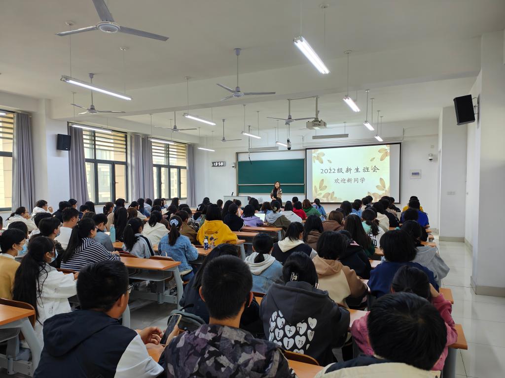 召开了2022级新生主题班会。班会由学院新生辅导员老师徐建英、尤泽民、张景赛分别主持,2022级全体同学参加。