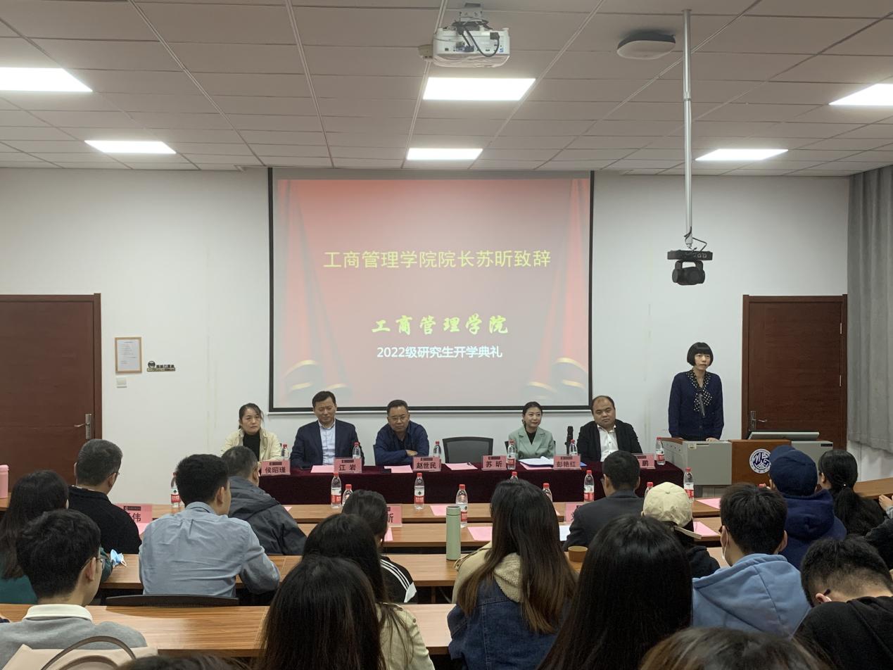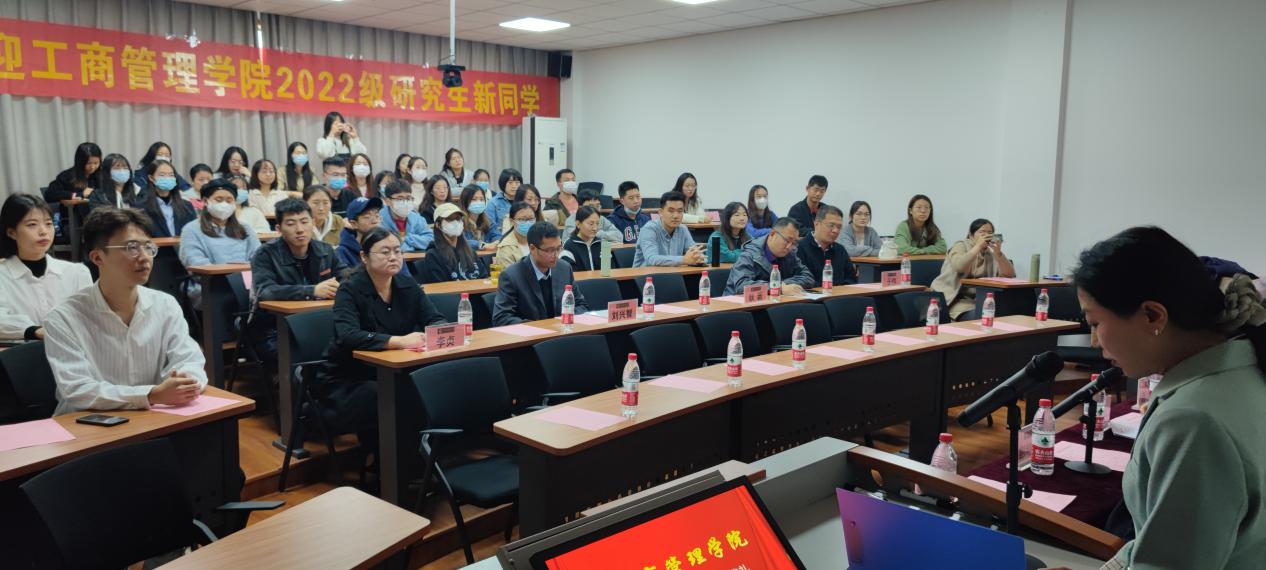 2022级研究生开学典礼在学景酒店201报告厅隆重举行。学院党委书记赵世民、院长苏昕、人才发展中心主任兼副院长江岩、党委副书记彭艳红、侯昭瑾、副院长徐鹏及各系教师代表出席典礼。典礼由彭艳红主持,2022级全体研究生参加。