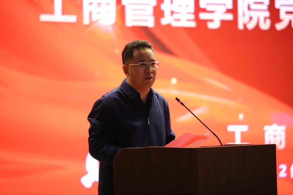 副院长王旭也向2022级新生同学们发来了问候和祝福。全体师生还共同观看了学院纪录片《青春相伴,“商”途有你》。