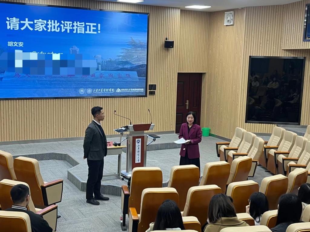 研究生学术沙龙启动仪式暨首期学术报告在逸夫楼103报告厅举行。本次活动特邀山东大学山东省人才发展战略研究院党支部书记、副教授胡文安,以《青年管理学者的学术成长:态度和方法》为主题进行首期学术分享。仪式由学院党委副书记彭艳红主持,研究生辅导员刘薇、任康以及全体研究生参加。