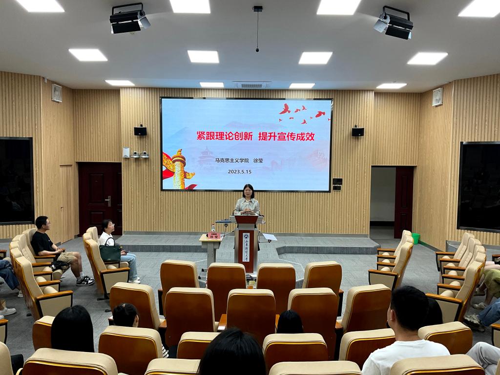 徐莹教授从中国式现代化的历史脉络、科学内涵和意义价值三方面展开,带领同学们对中国共产党人如何认识现代化、中国怎样实现现代化的探索与实践进行梳理,总结指出党的二十大报告是党和人民智慧的结晶,只有切实掌握二十大报告精髓才能更好地提升宣讲成效。此外,徐莹教授表示提升宣讲成效不仅要吃透党的理论精髓、紧跟党的理论创新,还应不断优化创新宣讲形式、选好宣讲课题、找到与宣讲对象的共鸣点,宣讲更有针对性才更能深入人心。