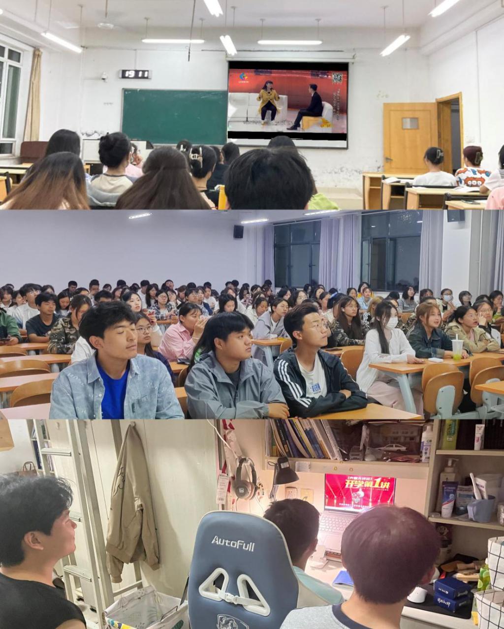 通过观看直播,同学们清晰的认识到中国式的现代化不仅是传统文化和现代文明的有效融合,更是中国走向繁荣富强,建设现代化国家的必由之路。大家纷纷表示,将勉励自己修身立德、锤炼品格,把握青春航向,打牢青春基石,把个人梦想与中国梦融为一体,把爱国情、强国志、报国行灌注于实现梦想的奋斗中。