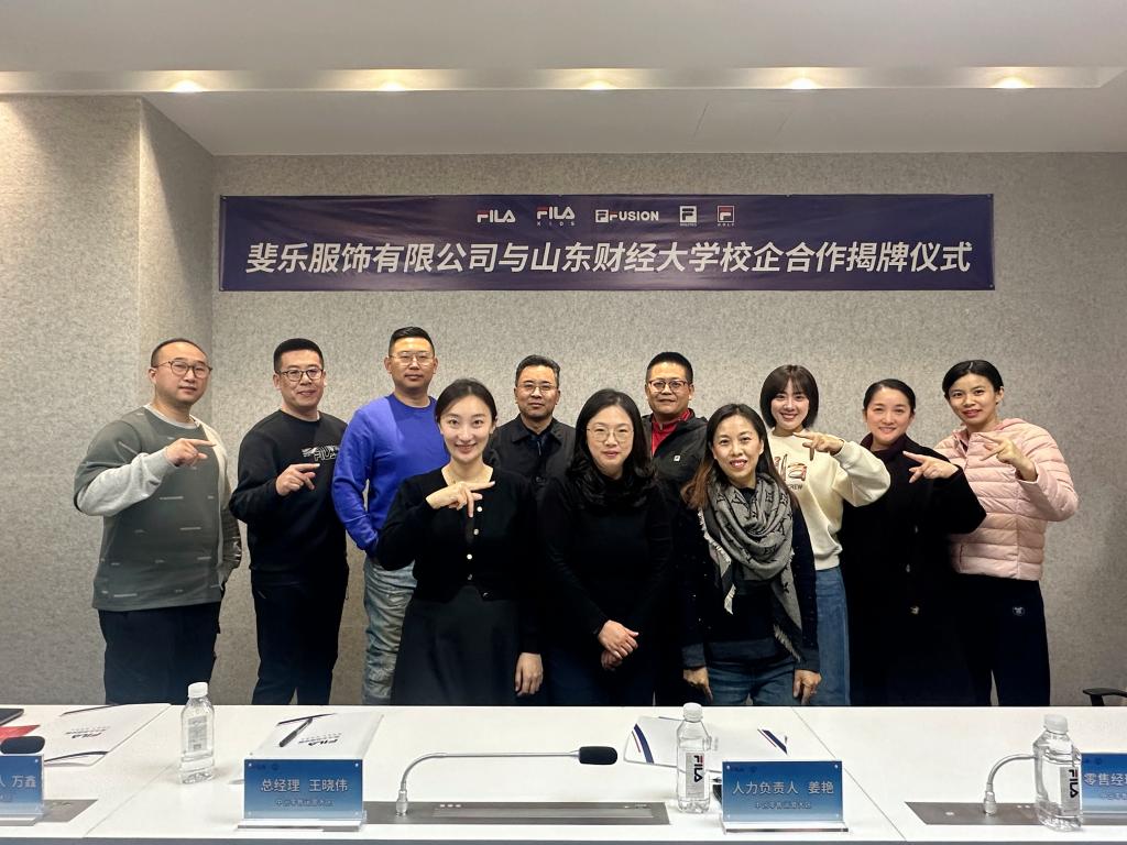 与斐乐服饰有限公司社会实践基地揭牌仪式在济南斐乐公司会议室举行。学院党委书记赵世民、党委副书记侯昭瑾及辅导员代表参加,斐乐中区零售运营大区总经理王晓伟、人力负责人姜艳、办事处负责人万鑫、零售经理潘刚、石鹏及企业代表出席仪式。