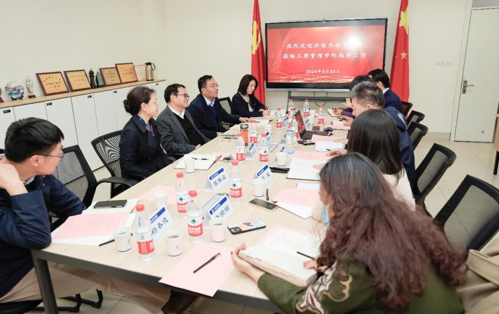 院长苏昕代表学院对洪俊杰校长一行表示热烈欢迎,并感谢学校领导对学院发展的关心和支持。苏昕从师资队伍、人才培养、教学改革、学科建设、科学研究、社会服务和国际合作等方面汇报了工作成绩和面临的挑战,并就学院下一步如何推动高质量、内涵式发展提出工作思路和设想。