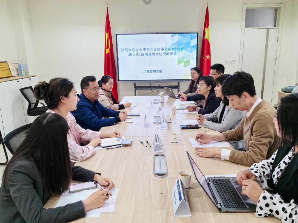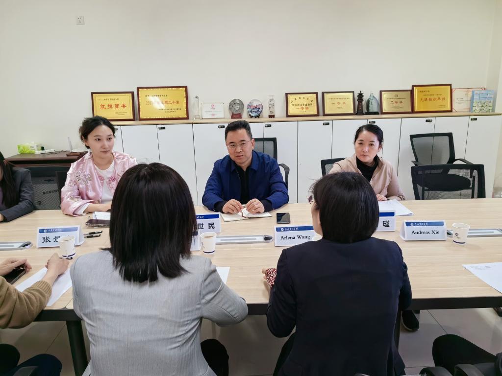,就招聘在校低年级大学生、开展订单式培养等问题开展调研交流,学院党委书记赵世民、党委副书记侯昭瑾、就业办主任张景赛交流活动。