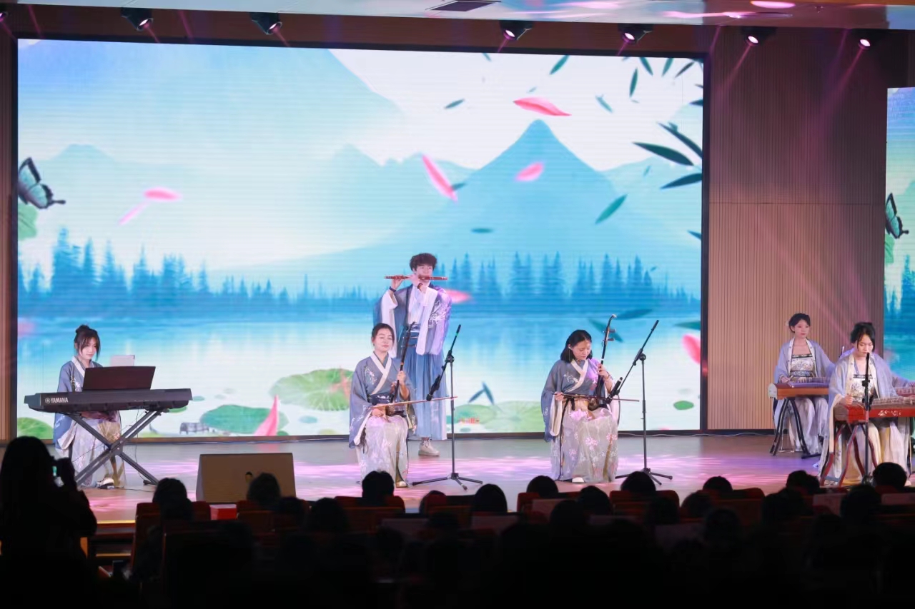 晚会在《因为选择,所以热爱》主题宣传片中拉开序幕,开场舞《奔跑的青春》瞬间点燃了现场的氛围。晚会共分为三个篇章。民乐演奏《神话》《大鱼》、歌曲《篇章开出花》《大梦想家》用悦动的音符唱响热情洋溢的青春时光;古典舞《江山水意》、爵士舞《火》、民族舞《维韵汉章》以曼妙的舞姿呈现文化传承与创新的魅力;小品《没有学习的人不伤心》用幽默诙谐的台词诠释了学习的意义;情景朗诵《以青春之名》吹响了新时代新青年勇担时代使命的号角。30余位合作企业代表、校友代表、师生代表共同演唱《书香里的中国》,将晚会的氛围推向高潮。