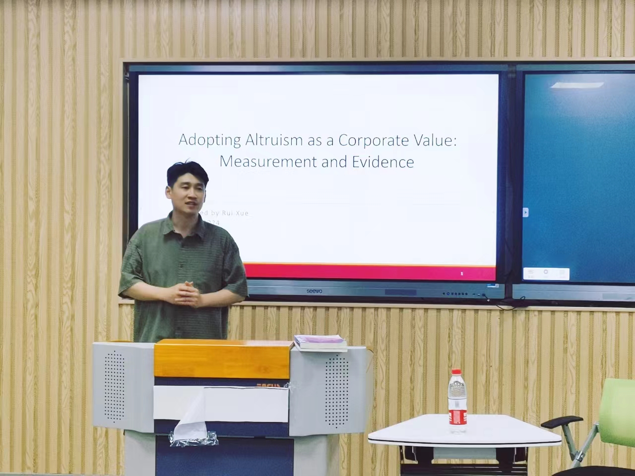 薛瑞教授以《Adopting Altruism as a Corporate Value: Measurement and Evidence》为主题,介绍有关利他主义的相关研究,展示了论文的选题、数据分析及撰写过程,并结合当前研究热点,对碳撤资、ESG以及绿色投融资等领域进行了解读,尤其强调了碳足迹核算的重要性和ESG指标的应用。