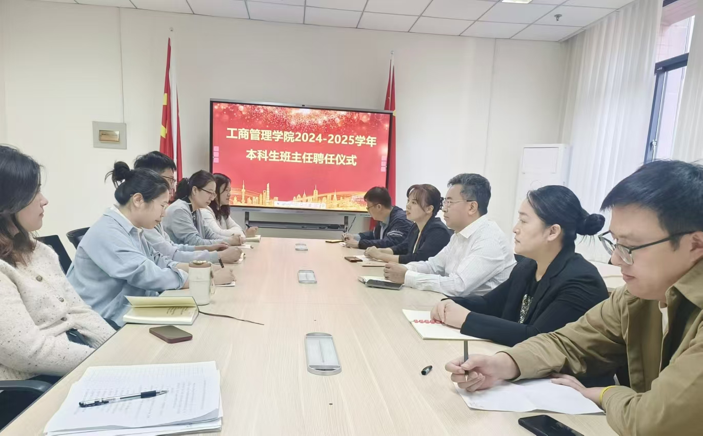 在Y207会议室举行了2024-2025学年本科生班主任聘任仪式。学院党委书记赵世民、学生工作部副部长张贞梅、学院党委副书记候昭瑾、工商系主任费振国、学院本科生班主任及部分辅导员参加了会议。会议由学工办主任陈盈君主持。