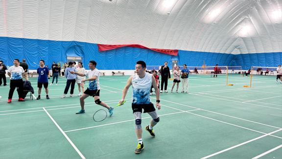 教职工精神饱满、斗志昂扬。他们时而轻盈地吊球,时而迅猛地扣杀,羽毛球在空中划出一道道美丽的弧线。场下的运动员们的加油声、助威声此起彼伏,为场上的运动员们提供了足够的动力。闫实表现尤为突出,稳扎稳打,充分发挥实力,拿下男子单打冠军。同时团队赛队员们配合默契,战术运用得当,一路厮杀到了决赛,在决赛中队员们顽强拼搏,敢打敢拼,最终荣获亚军。