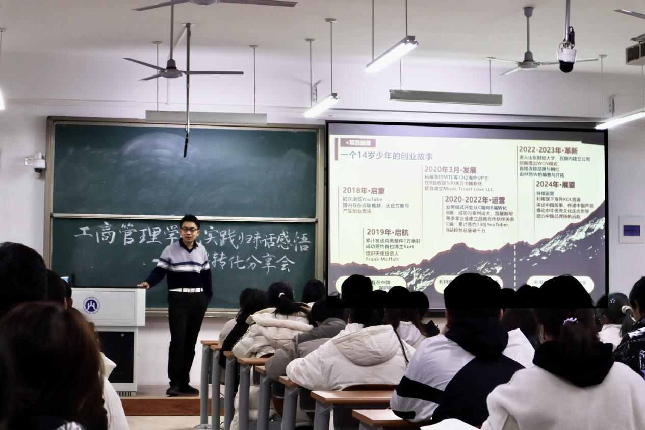 李春霖的分享点燃了现场同学们的参赛热情和创业激情,有创业想法和参赛意向的同学们踊跃提问,李春霖结合自己的创业经历和参赛经验认真解答。李春霖在交流时表示,创业是一项充满挑战的任务,需要创业者具备丰富的行业知识和实践经验。对于有创业意向的同学,他建议先在实习实践中积累经验,深入了解行业发展状况,鼓励同学们积极参加创新创业竞赛,在竞赛中提升自己的创新意识和能力。