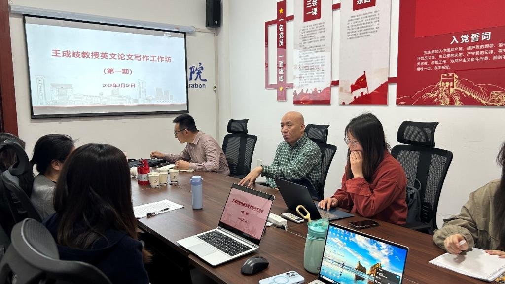 王教授在英文论文写作工作坊(第1期)中,以其国际化视野和审稿人视角,针对学院青年教师及研究生提交的6篇英文工作论文进行一对一辅导,从理论贡献、假设提出、研究设计、数据分析及学术表达等方面提出针对性修改建议。现场互动环节中,参会教师针对各自写作中遇到的问题与王教授展开深入探讨。王教授为研究者厘清思路、突破瓶颈,现场气氛热烈,学术氛围浓厚。