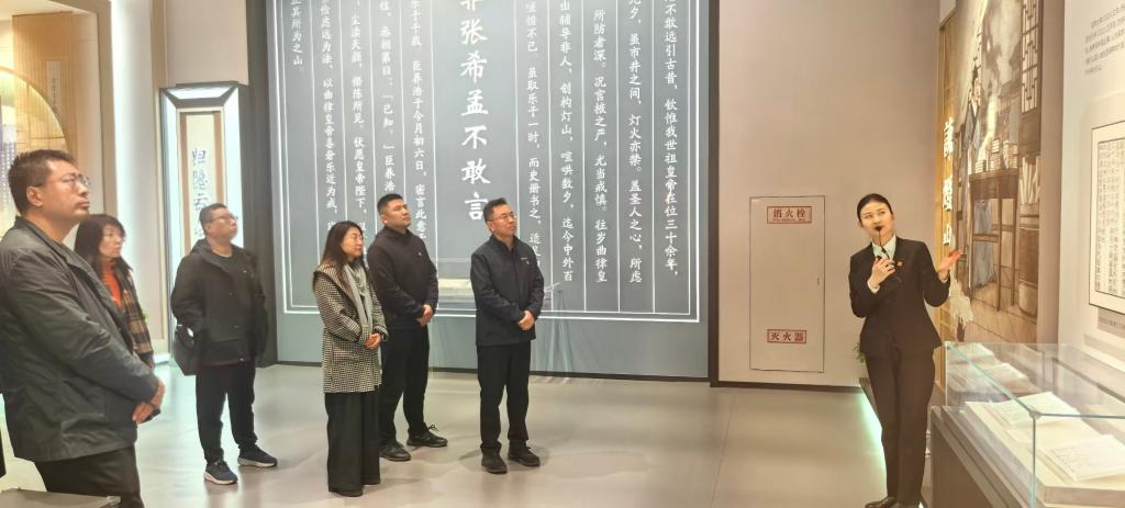 在讲解员的引导下,大家依次参观了“一代名臣”“为政忠告”“散曲大家”“水月松风”四大主题展区,系统回顾了张养浩“以布衣入京,历登枢要”的仕途生涯,深切感悟其“清廉自守、心系苍生”的高洁品格。展陈中,张养浩历任各职时的廉政事迹、《三事忠告》中的为官箴言,尤其是“吏不畏吾严而畏吾廉,民不服吾能而服吾公”的执政智慧,引发了老师们的深入思考。