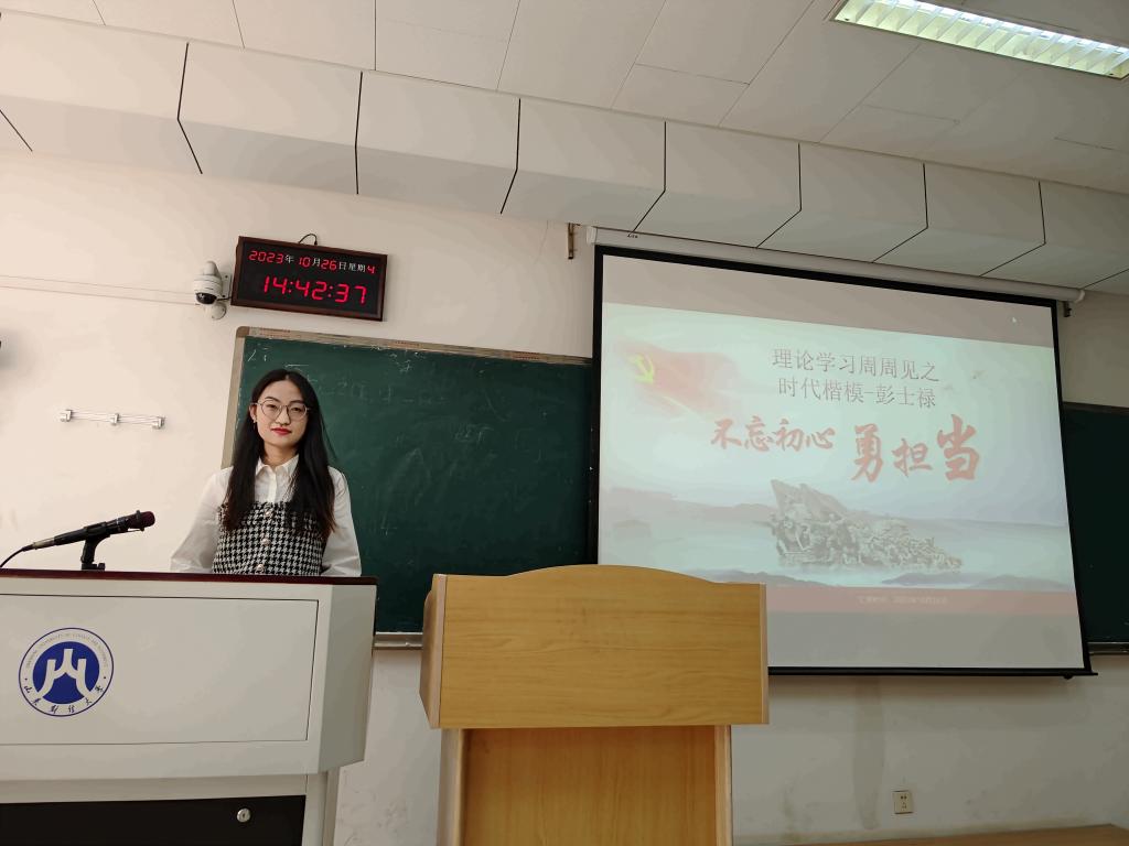 在Y201教室开展了本学期第二次“理论学习周周见”活动。本次活动的主题是“学习时代楷模彭士禄不忘初心勇担当的精神”,研一研二全体研究生参加。