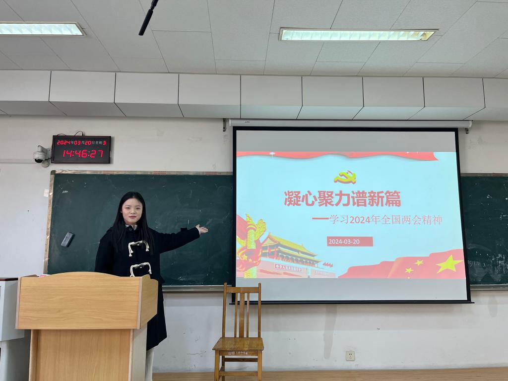 在Y202教室开展了以“凝心聚力谱新篇——学习2024年全国两会精神”为主题的理论学习周周见活动,由新媒体工作部尹秋月同学主讲,研一研二全体研究生参加。