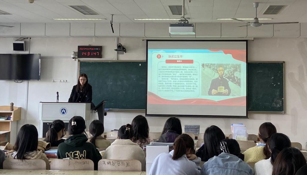 首先,研学会陈庆佳同学为我们介绍了红旗渠的修建背景。上个世纪60年代在河南的林县山区,百姓因缺水而备受煎熬。为改变百姓的现状,“引漳入林”工程开始投入建设。而红旗渠便是劳动人民经历十年之久完成的一项伟大成果,张买江便是这其中的建设者之一。