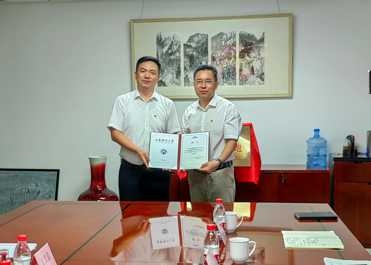 党委书记赵世民与东港股份有限公司党总支书记王卫国共同签署了党建共建协议书,并为受聘导师颁发大学生职业生涯规划校外导师聘书。