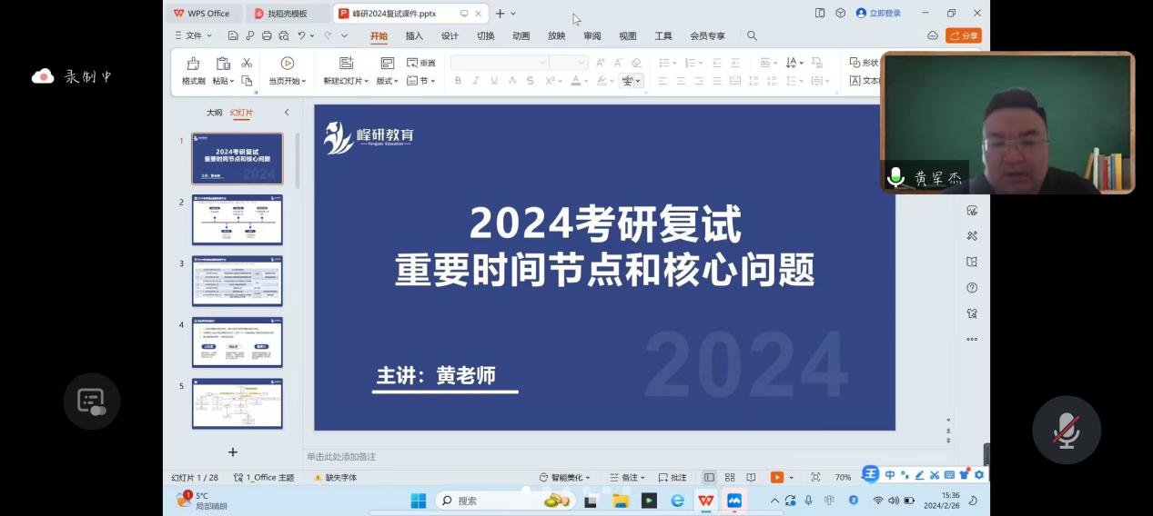 优秀校友、峰研教育创始人黄军杰为学生们作考研复试和调剂工作指导,学院党委副书记侯昭瑾、毕业班辅导员陈盈君、李晓丽、就业办主任张景赛及2024届毕业生参加讲座,讲座由张景赛主持。