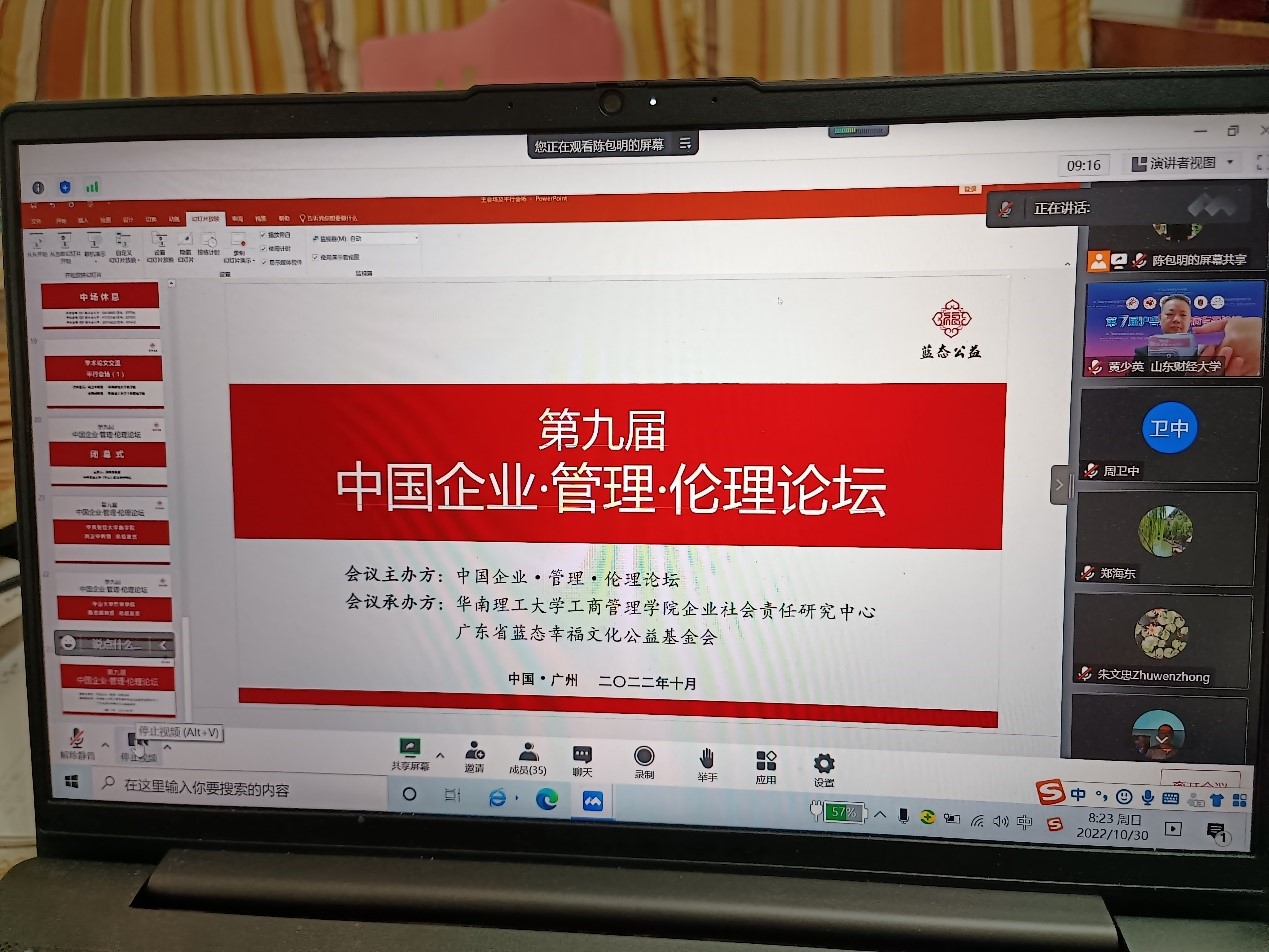2022年10月30日,第九届中国企业·管理·伦理论坛在广州成功召开。中国企业·管理·伦理论坛由上海交通大学安泰经济与管理学院与《管理学报》于2014年6月联合发起,迄今为止,已成功举办八届。论坛致力于成为高水平跨学科学术交流平台,引领我国企业社会责任、企业伦理与管理伦理领域的学术研究,促进理论和实践的发展。